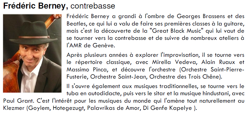 Cet ensemble klezmer basé dans la région genevoise vous propose un
