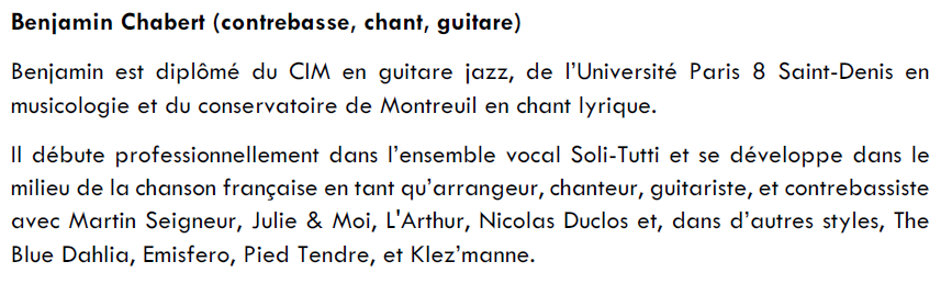 récents, s'appuyant sur la direction musicale de Benjamin Chabert