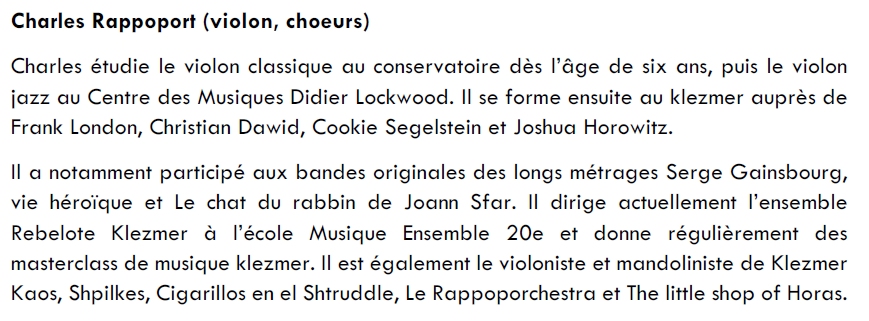 ...chants yiddish et musique klezmer dimanche 30 novembre 2025 à