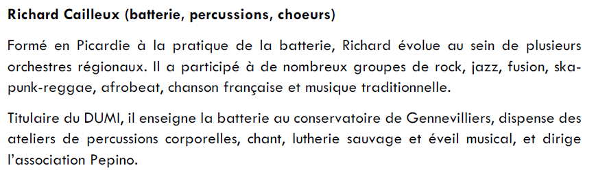 (violon), Benjamin Chabert (contrebasse et guitare) et Richard Cailleux