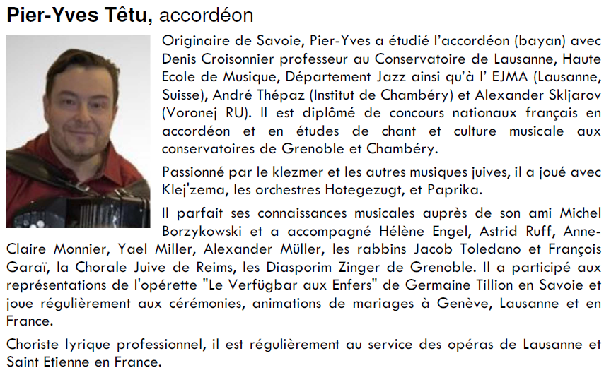 Cet ensemble klezmer basé dans la région genevoise vous propose un